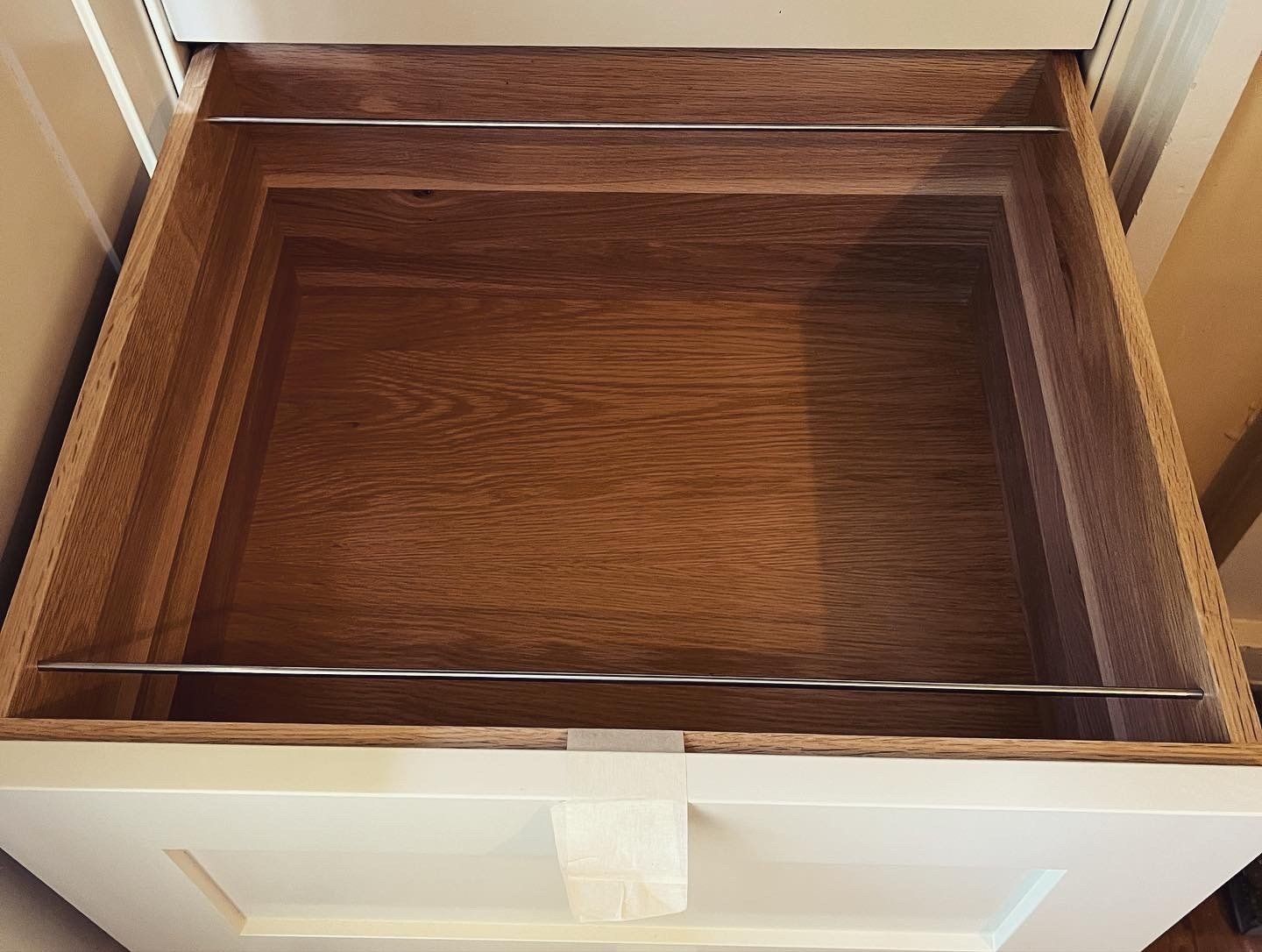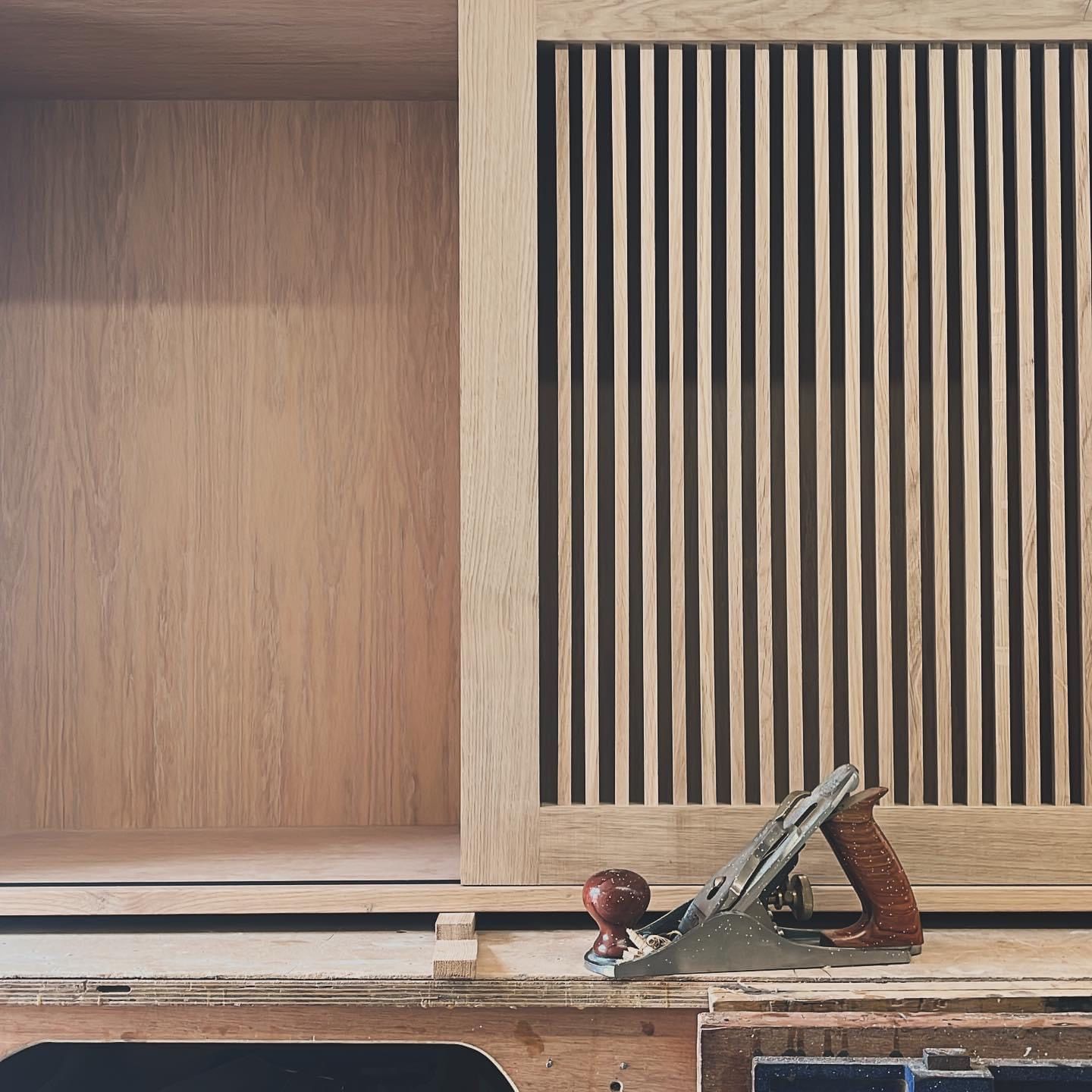 We use Birch plywood as the structural core for every carcass we build. It’s more expensive — but it is dimensionally stable for decades. This is why we specify it.